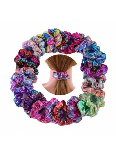激光雕刻织物发圈,金属渐变猪肠图案 - 彩色 - 查看 5