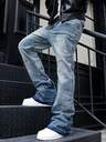 直筒喇叭牛仔裤,百搭时尚水洗牛仔裤,棉质斜插口袋长裤