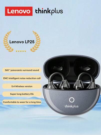 Lenovo 联想 LP25 蓝牙耳机,耳挂式,蓝牙 5.4,ENC 通话降噪,定向音频,长效电池续航,智能触控,兼容 Apple 和 Android 平板电脑 - 鐵灰色 - 查看 1