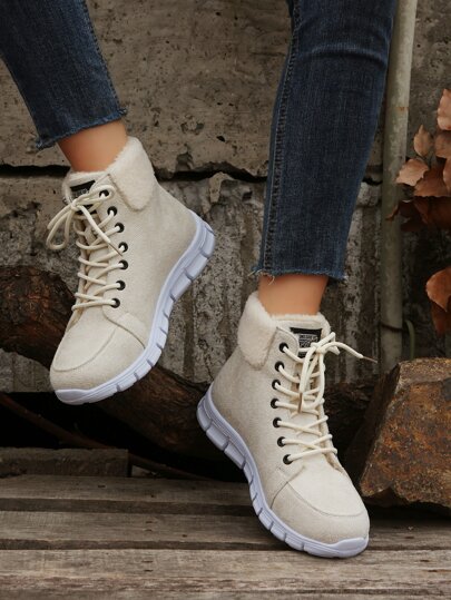 字母貼飾前綁帶仿麂皮雪地靴 - 米色 - 查看 1