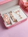 1 套女士手表女士时尚休闲石英表和简约时尚五瓣花项链耳环戒指手链手表适合女士日常佩戴、生日礼物、派对、节日聚会,也是送给自己或朋友的理想礼物(不含盒子)