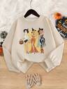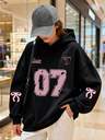 少女秋装彩色耳机,字母印花图案,休闲风格,连帽衫,适合日常穿着、派对、学校、参加音乐节、度假、通勤。可作为礼物送给家人、男朋友、女朋友、朋友、女孩冬装、必备连帽衫