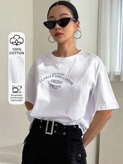 DAZY 字母圖案落肩T恤 - 白色 - 查看 6