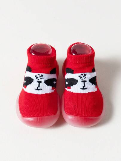 輕便的嬰幼兒運動鞋,防踢、防滑袜子鞋,卡通熊貓設計,適合初學走路的孩童 - 紅色 - 查看 1
