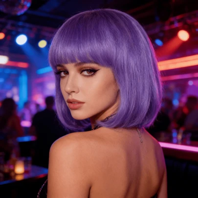 轻盈蓬松的内扣刘海波波头假发,亮紫色低温纤维材质,外观自然,易于造型,是角色扮演、日常佩戴和派对的理想之选,具有修饰脸型和显瘦的效果。 - 紫羅蘭色 - 查看 5