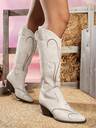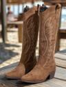 西部风格刺绣复古粗跟舒适修身防滑尖头中筒马靴