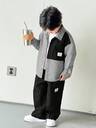 SHEIN 2件套小男孩灰色牛仔翻领长袖衬衫和宽松长裤套装