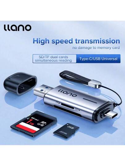 Llano 二合一 USB 读卡器 OTG Type-C TF/SD 2T 读卡器 - 灰色 - 查看 1