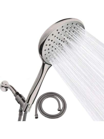 本地仓库 - 油擦青铜 6 英寸高压手持淋浴喷头,配有 6 英尺软管和可调节支架 - 豪华淋浴喷头 - 1 分钟安装 家居浴室装饰 - 2 - 優雅拉絲鎳 - 全套 - 查看 5