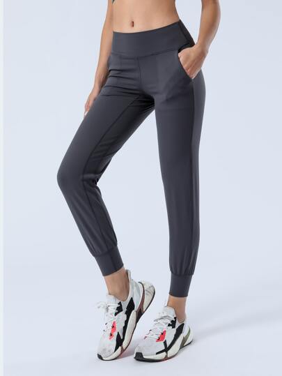 寬鬆九分瑜珈褲帶拉繩下擺跑步 - 灰色 - 查看 1