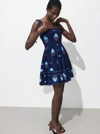 Maija 女式度假休闲花卉印花吊带背心迷你连衣裙 - 藍色 - 查看 9