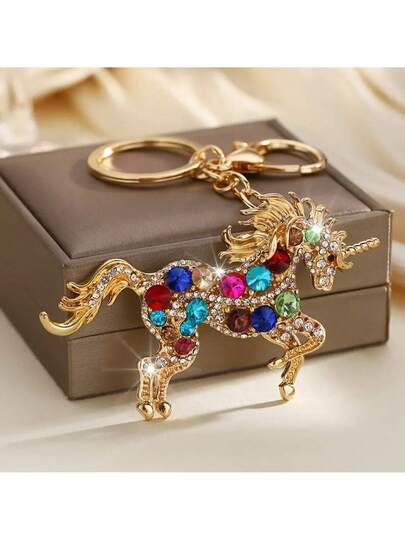 Luxury Crystal Unicorn Keychain – Oversized Rhinestone & Glass Pendant, Fashionable Statement Bag & Key Accessory For Women