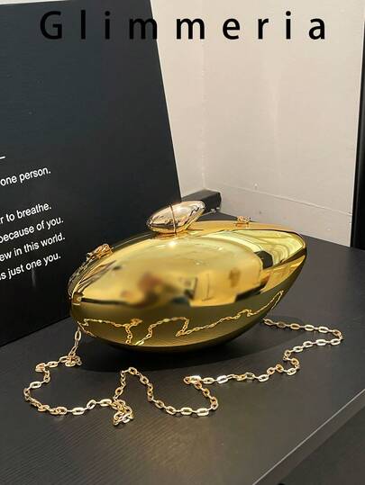 奢华时尚亚克力晚宴包,新款简约金属鹅蛋色亮面宴会链条单肩斜挎包 - 金色 - 查看 1