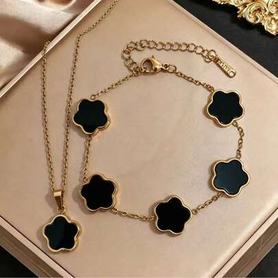女士奢华黄金项链手链套装,钛钢材质,不褪色,独特设计锁骨链,百搭通勤饰品