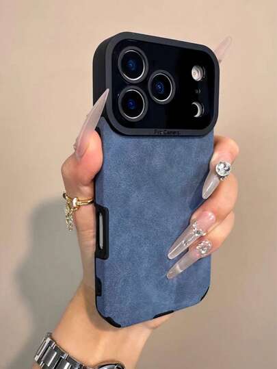 奢华哑光仿皮全包覆式摄像头镜头保护手机壳,兼容 17/16/15/14/13/12/11 Pro Max Plus/17 Air,镜头保护,防震软后盖 - 藍色 - 查看 1