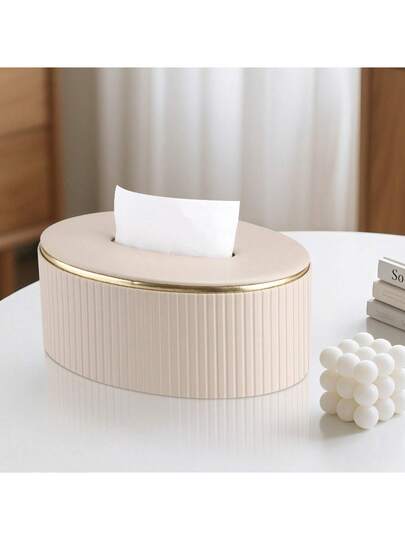 奢华竖条纹 PU 皮革椭圆形纸巾盒,优雅金边餐巾纸分配器 - 彩色 - 查看 1