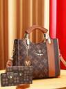 [仿皮手提包套装] 3 件套土黄色女士仿皮手提包 - 涤纶内衬,旋扣开合,单肩包,搭配苹果包和手拿包