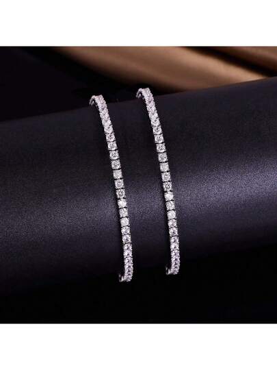 6. 2条18K白金/黄金镀层3毫米圆形立方氧化锆经典网球手链,尺寸6.5-8.5英寸