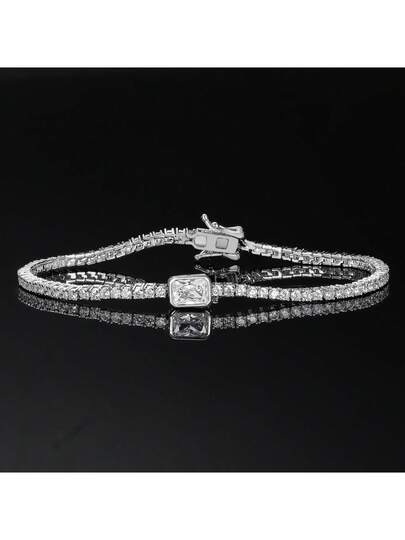 MDFUN 1 件时尚百搭白金铜微镶嵌锆石心形/矩形锆石网球手链,适合女性日常佩戴和送礼 - 長方形 - 查看 1