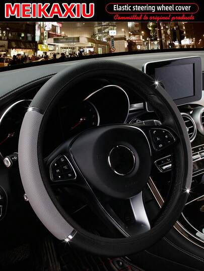 MEIKAXIU 1 件闪亮金属 PU 皮革方向盘套,适合 14.5-15 英寸汽车配件 - 灰色 - 查看 1