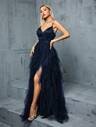 魔幻,新品上市,高领,亮片,华丽,晚礼服,3D立体花卉,层叠设计,透视效果,亮片拼接,长袖,雪纺,适合,舞会、婚礼、派对、婚礼宾客等场合。