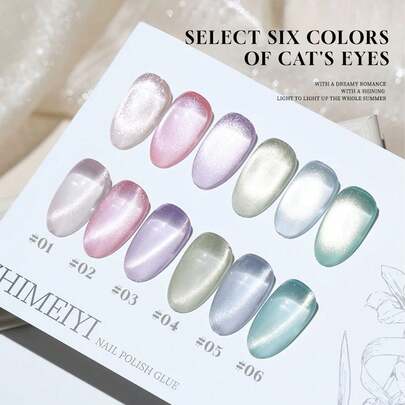 MIANEL 12毫升冬季美甲6色玻璃珠猫眼凝胶指甲油,情人节美甲2026新年派对全息猫眼指甲油,粉色美甲 - 彩色 - 查看 1