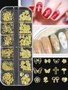 1 盒星形、月亮、心形、三角形、方形金属铆钉、3D 金色朋克美甲装饰、12 格美甲亮片饰品 DIY 美甲宝石美甲用品指甲