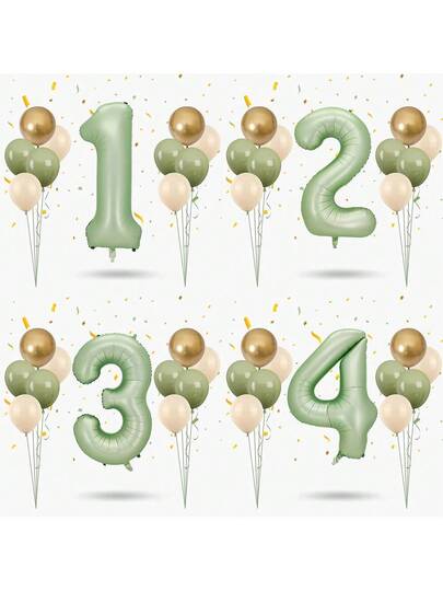 MINKOJA 12个鼠尾草绿复古气球套装,含一个32英寸橄榄绿数字铝箔气球,适用于一周岁生日派对装饰、房间装饰、家居装饰、婚礼、母亲节礼物、圣诞节等场合。