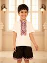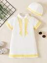 SHEIN 少女花卉刺绣正面纽扣长袖褶皱休闲连衣裙
