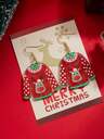 一对可爱甜美红色蝴蝶结圣诞树形耳环适合女性任何场合