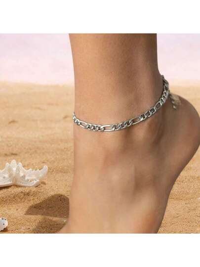 MONALLY 1件简约时尚Firago银色链条脚链,不锈钢材质,女士饰品,适合夏季度假、旅行、海滩、派对等场合。 - 銀色 - 查看 1