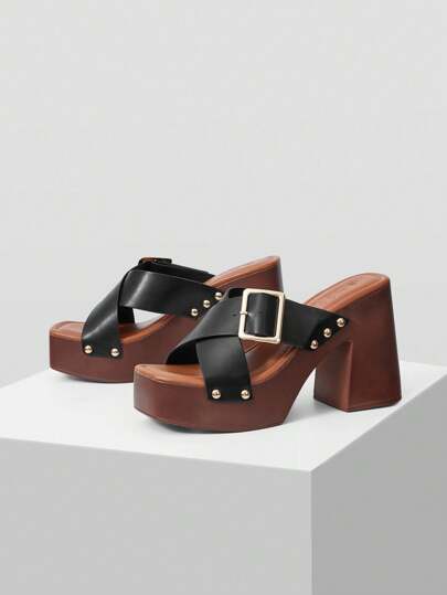 MOTF 棕色厚底系带女式凉鞋 - 黑色 - 查看 1