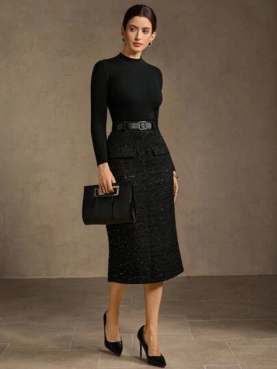 MOTF PREMIUM 简约时尚优雅直筒裙 - 黑色 - 查看 1