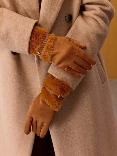 MOTF PREMIUM 女士时尚百搭保暖露指手套,秋冬季 - 焦糖色 - 查看 6