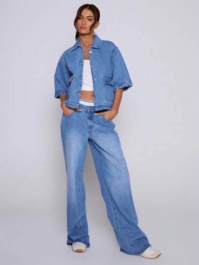 MUSERA 低腰阔腿口袋牛仔裤,仅限春夏复活节90年代Y2K风格 - 藍色 - 查看 2