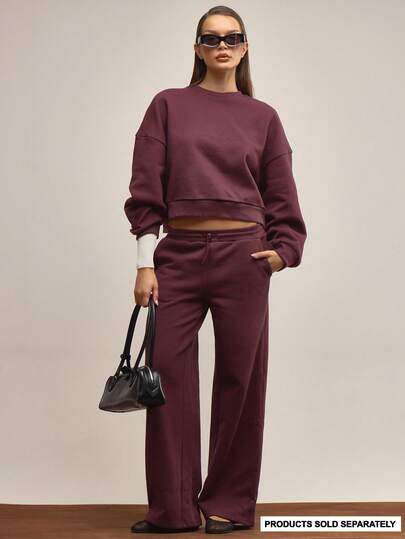 MUSERA 可调节腰带直筒运动裤,仅裤子,优雅秋冬圣诞可爱派对新年款 - 紫紅色 - 查看 6