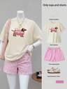 龙舌兰印花女士宽松短袖上衣和条纹短裤套装,上衣,夏季服装,短袖,中国新年,农历新年,马年,春节,新年快乐,情人节,情人节礼物,送给她的礼物