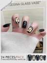 30片方形双色可卸假指甲,棕色调,完美贴合,亚克力材质,套装包含1瓶甲油胶和1把指甲锉,适合女性在秋冬季日常工作、学习和聚会中使用。也适合派对、节日和日常佩戴。