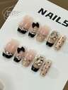 30片中号杏仁形压制假指甲贴片,珍珠蝴蝶结撞色甜美酷炫日韩风女士指甲贴片,配1片果冻胶和1片摩擦条,适合女性派对、舞会、日常休闲装,可拆卸可重复使用指甲美甲用品美甲