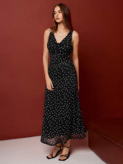 Maija 女士优雅波点印花无袖连衣裙,夏季 - 黑色 - 查看 1