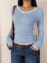MainGRL 女式秋季新款圆点网眼露背喇叭袖长袖T恤