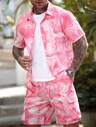 Manfinity Chillmode 2 件男士短袖衬衫和短裤套装,时尚夏季男士沙滩装套装男士沙滩装,度假