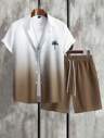 Manfinity Chillmode 男士度假休闲渐变椰子树印花背心和短裤套装,度假海滩装,舒适装