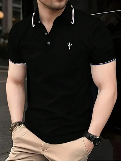 Manfinity Dauomo 男士休闲商务印花短袖 Polo 衫 - 黑色 - 查看 1