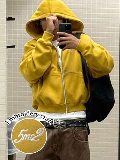 Manfinity Dauomo 男式字母印花长袖拉链休闲连帽衫 - 黃色 - 查看 1