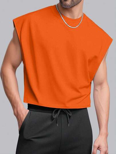 Manfinity Dauomo 加大码男士户外休闲无袖背心,橙色,夏季新款,运动服,骑行服,加大码男士背心