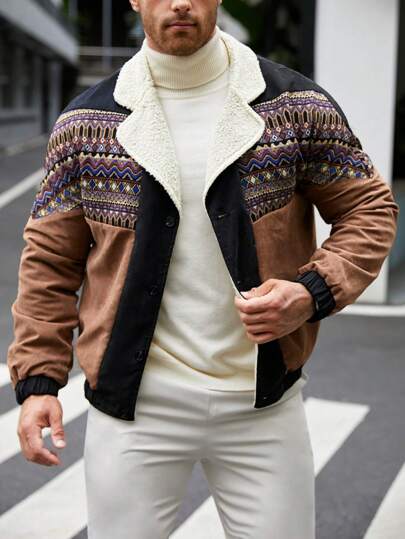 GENTILAND 超大款男士几何印花泰迪熊内衬夹克 - 彩色 - 查看 1