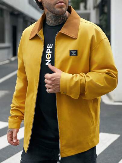 GENTILAND 寬鬆版型男士字母拼接拉鍊外套,不含t恤 - 黃色 - 查看 1