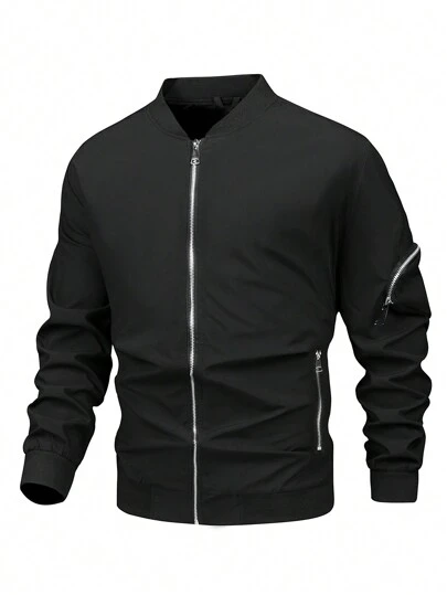 Manfinity Homme 男士加大號拉鍊飛行員夾克 - 黑色 - 查看 1
