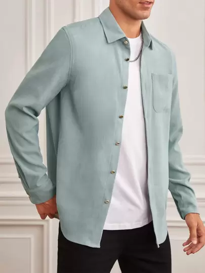 Manfinity NXTstreet 宽松男式贴袋长袖休闲衬衫 - 薄荷綠 - 查看 1